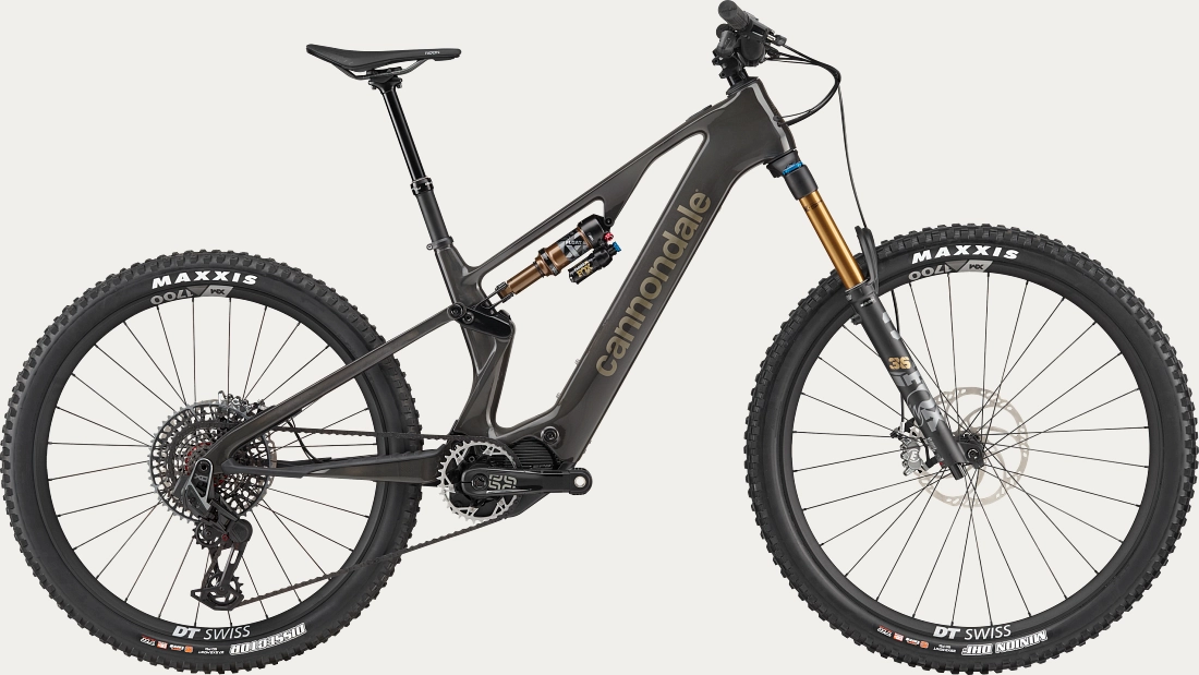 Telaio interamente in carbonio, leggero e resistente, con escursione da 150mm, tecnologia FlexPivot e cinematica delle sospensioni Proportional Response. Sospensioni Fox Factory top di gamma: forcella Float 36 Factory da 160mm e ammortizzatore posteriore Float X Factory. Cambio SRAM e-MTB wireless XO AXS a 12 velocità, pedivelle e*thirteen Race Carbon e freni a disco idraulici Magura MT7. Manubrio in carbonio Hollowgram SAVE con smorzamento delle vibrazioni. Motore Shimano EP801 personalizzato per Cannondale e batteria interna 600Wh.